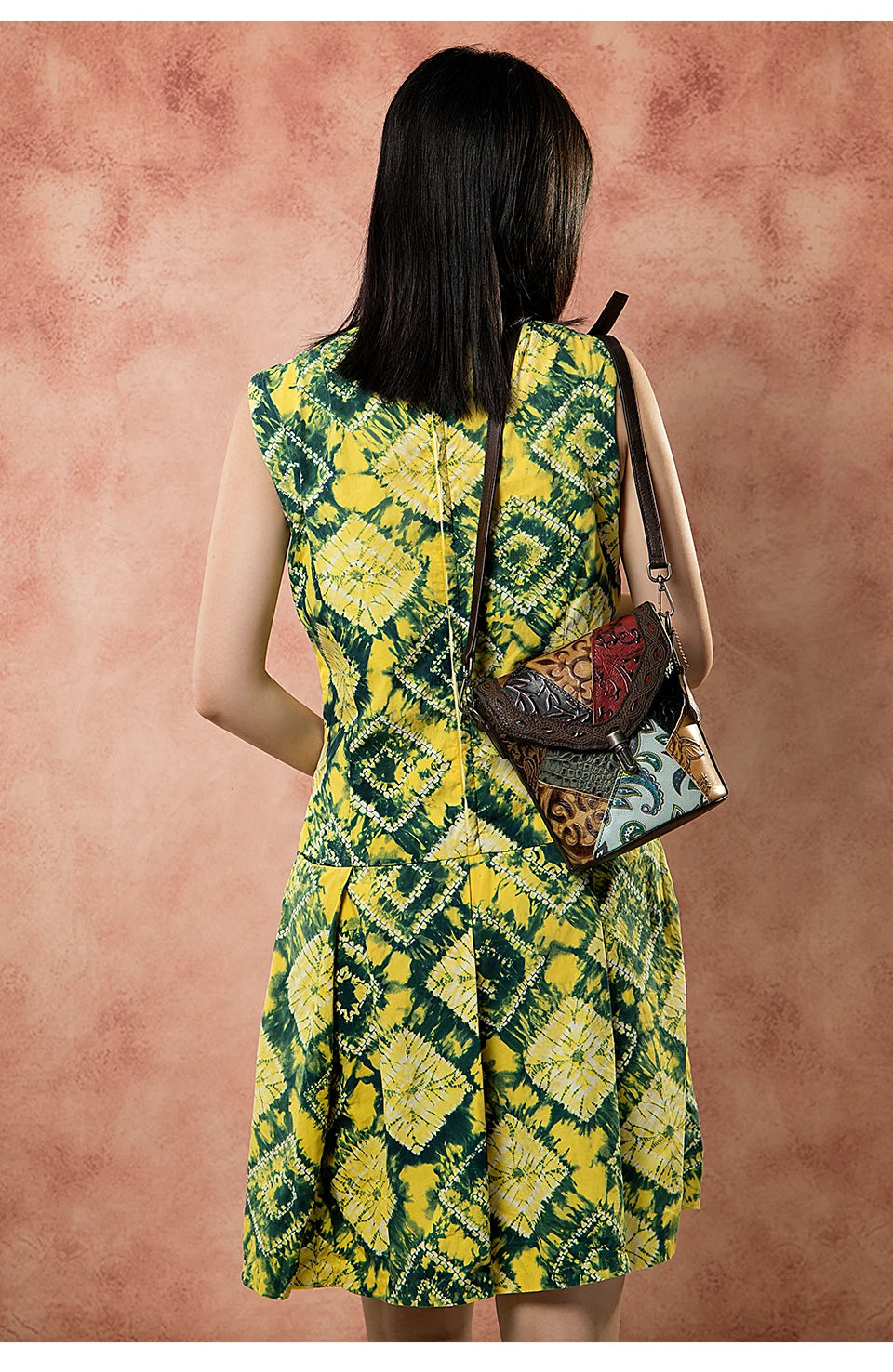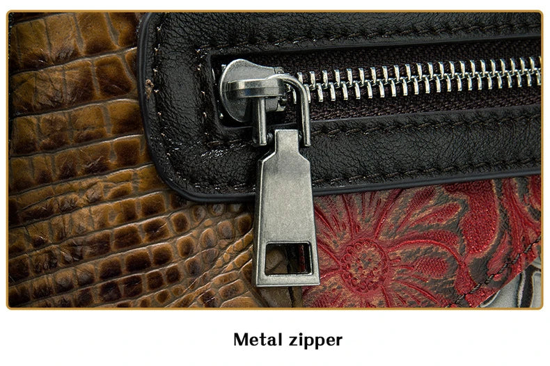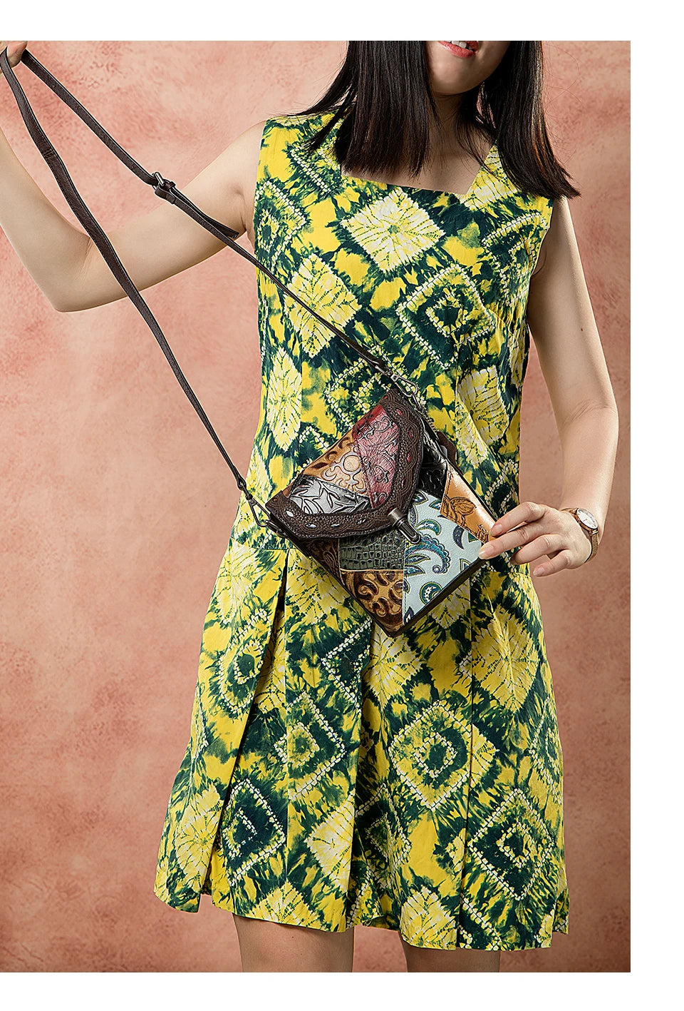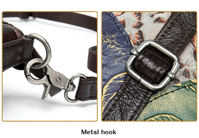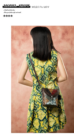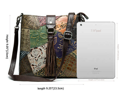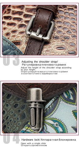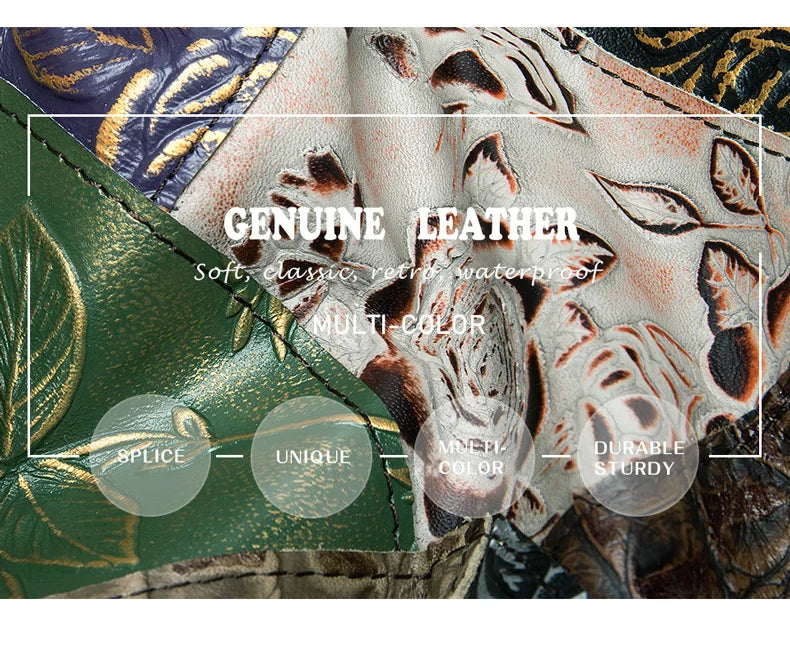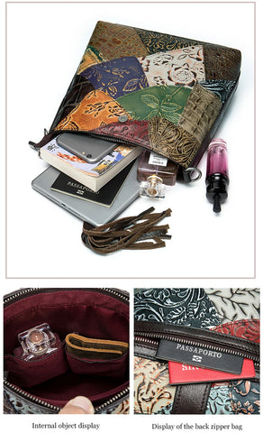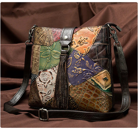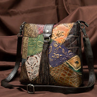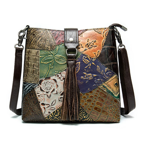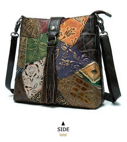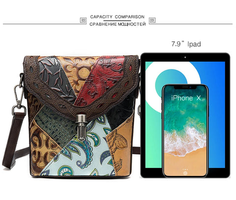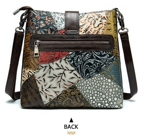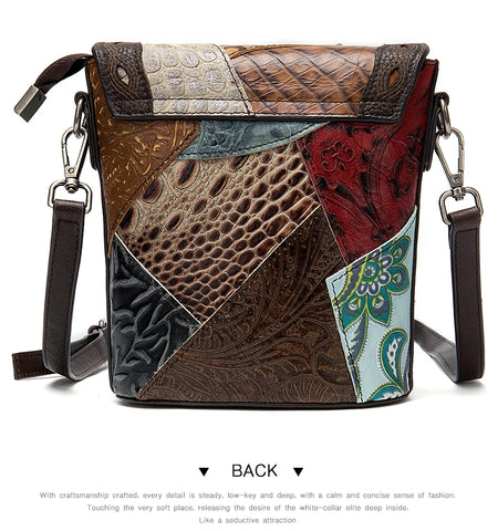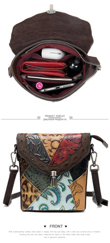 MAHEU Fashionable Women Shoulder Bag Ethnic Style Genuine Leather Crossbody Bags of Female Ladies Patchwork Leather Sling Bag - Design 1